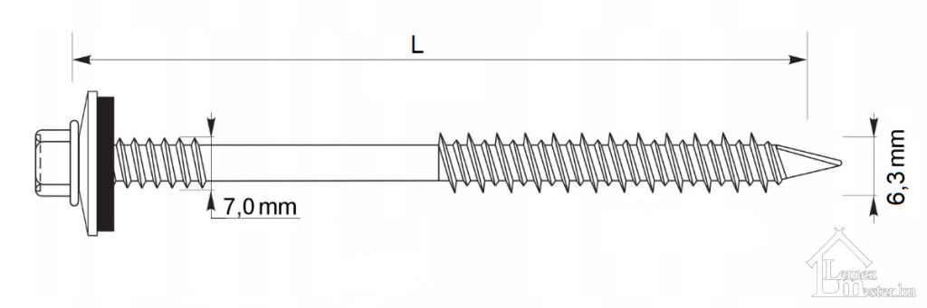 Horganyzott és festett szendvicspanel csavar, neoprén (EPDM) hőálló tömítéssel ellátott alátéttel. Alkalmas fa-, vagy beton szerkezethez történő rögzítéshez. RAL standard színekben rendelhető.